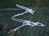 Zur Montage wird eine Metallsäge und ein Bohrer, 6mm, benötigt. Der vorhandene Kotflügel wird eingeschnitten/gesägt . 2 Schlitze in ca. 6mm breite. Dann wird die Verstärkung durch diese geschoben und am Rahmenheck an den vorhandenen Löchern fixiert. Die Verstärkung wird ausgerichtet und angepasst. Nun werden die 2 vorgestanzten Löcher auch in das Rahmenheck gebohrt und alles verschraubt. Jetzt haben wir dort auf jeder Seite 2 Löcher und durchbohren den Kotflügel an den vorgesehenen Löchern der Quertrverse. Da viele verschiedene Rücklichteinheiten / Kennzeichenträger genutzt werden haben wir den hinteren Teil für alle universell ausfallen lassen. Rücklicht/Kennzeichenträgereinheit zwischen Kotflügel und Verstärkung schieben und bohren / schrauben. Die Kabel können an den in der Verstärkung befindlichen Löchern mit Kabelbindern fixiert werden. Feertich . | |||