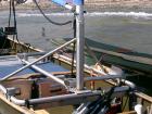 mit Delta Segel Tourenfreunlich. Ein Aluminiumrahmen aus Rechteckrohr. Daran befestigt sind der verschiebbare Schwerthalter mit Schwert, der 3 Punkt Mastfuß sowie die Rohrführungen für die Auslegerrohre an denen der Schwimmer befestigt wird. Die Einheit wird mit Holzleisten unter den Süllrand geklemmt. Gefahren wird dieser Aufsatz mit einem Delta Segel 6,25m².Dieser wird mittels Holzleisten unter den Süllrand geklemmt. Das Boot wird vom Aufsatz gezogen. Es sind am Boot keine Arbeiten notwendig. Eventuell vorhandene Surfsegel können auch gefahren werden. Dazu wird die Steueranlage für Proa/Delta Segel benötigt. Wer auch mit Motor fahren möchte der sollte die Steueranlage mit Motorhalter wählen. |