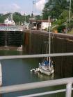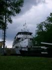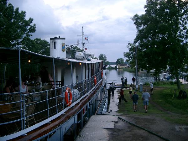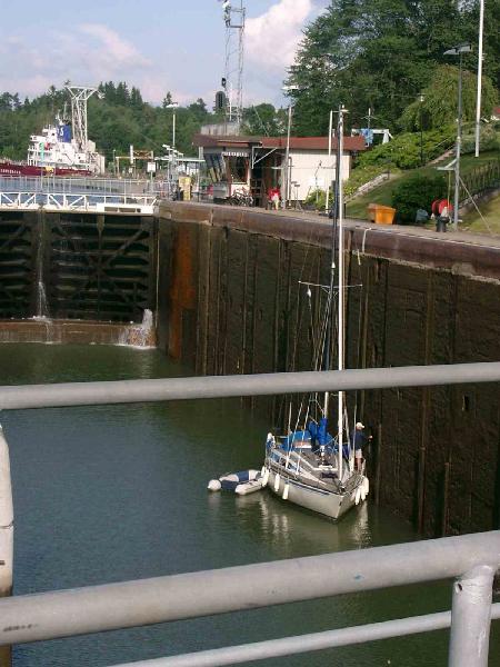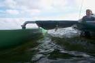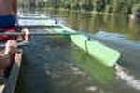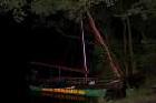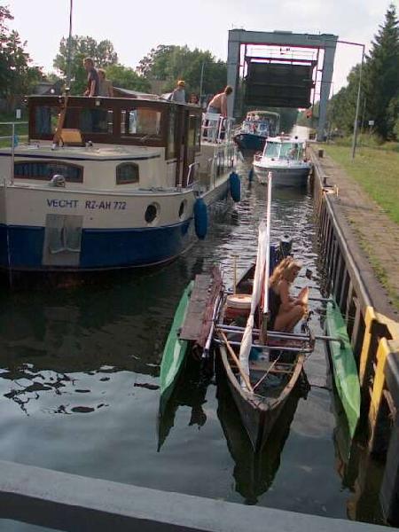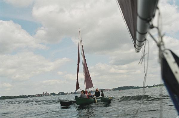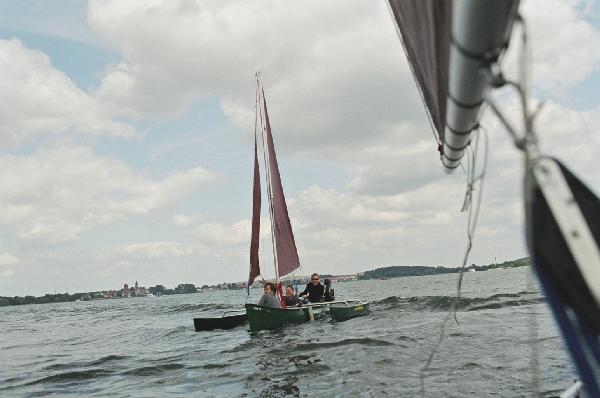 hier wird ein Loch ´gebohrt um den Mast zu am Vorstag halt zu geben. |
